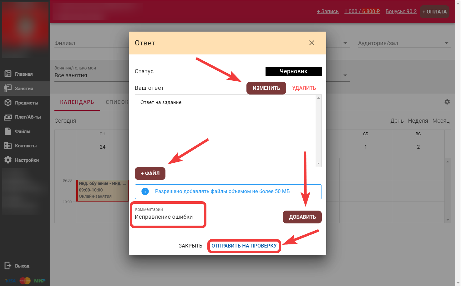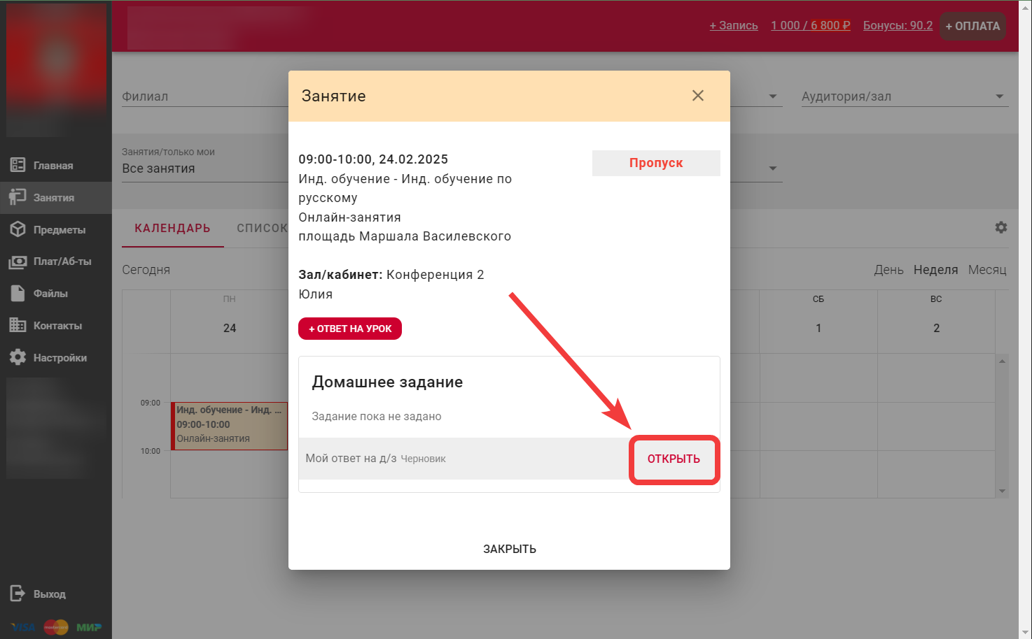Как посмотреть домашнее задание/задание на урок и отправить ответ?