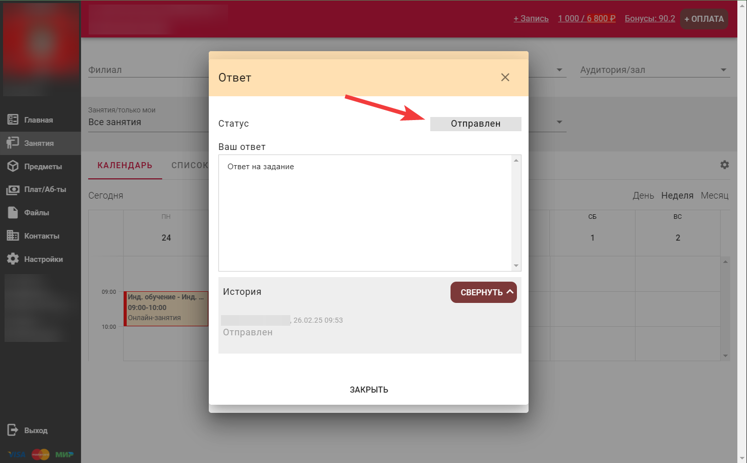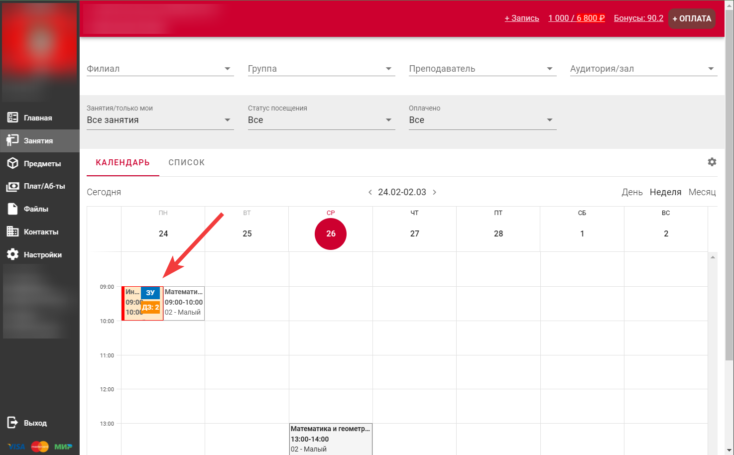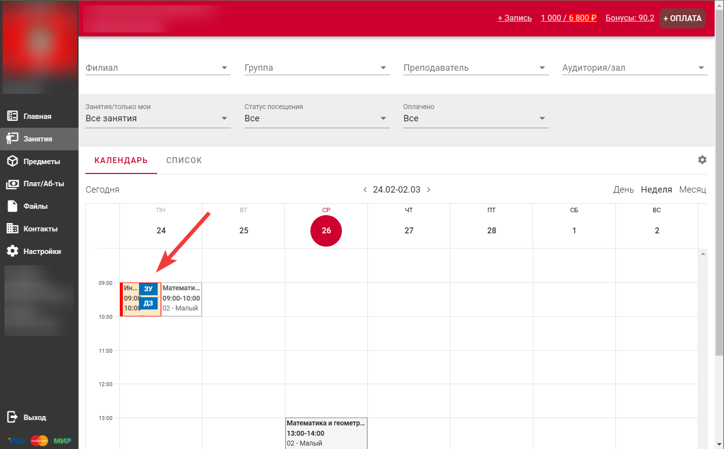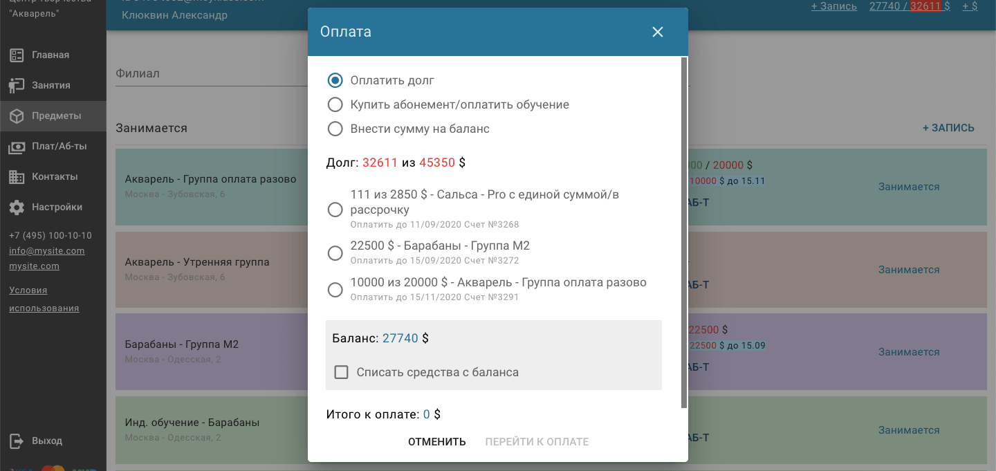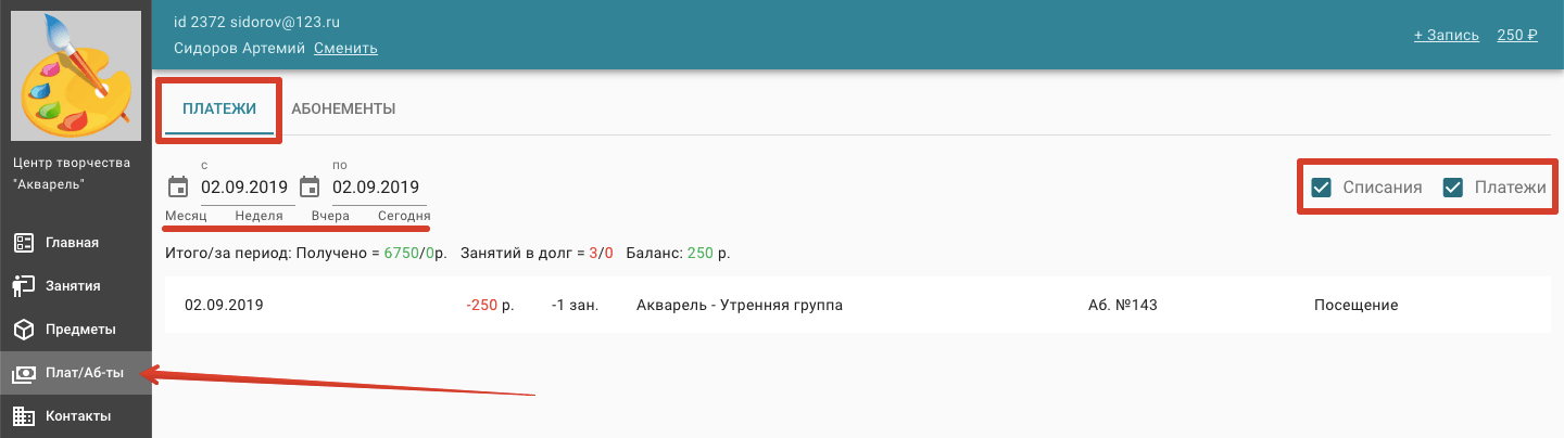 Как посмотреть платежи и за какие занятия сколько списалось?