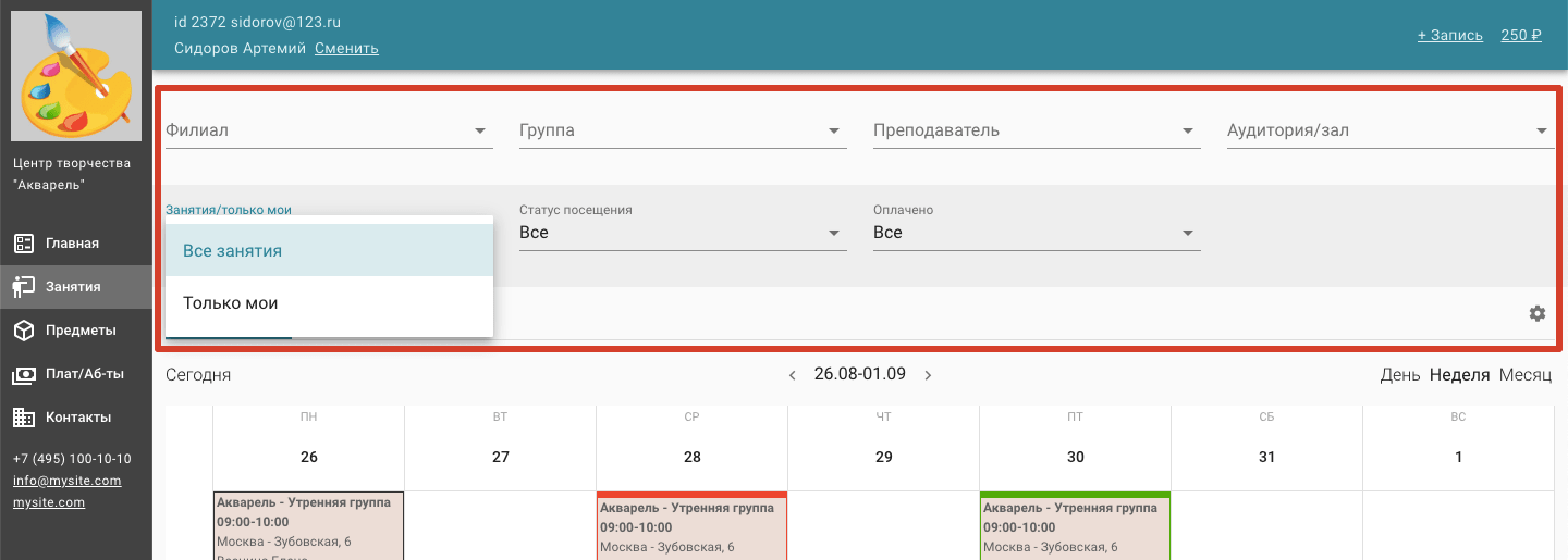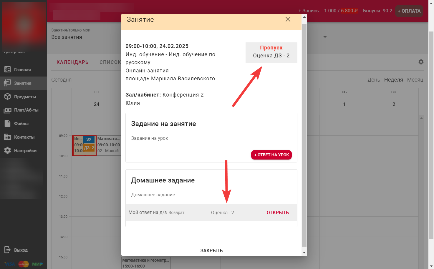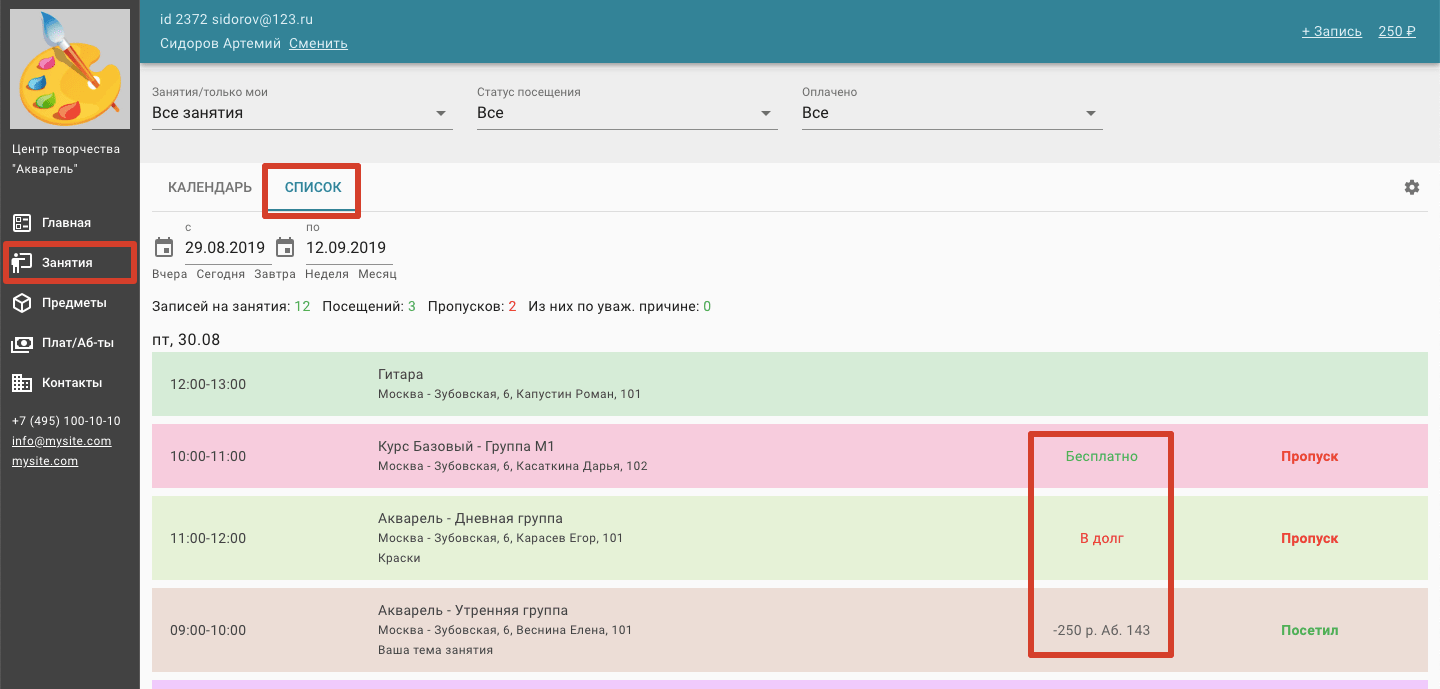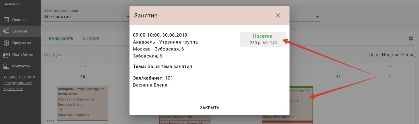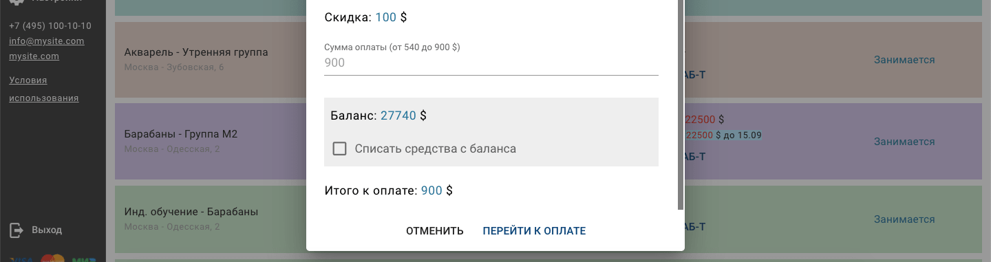 Как посмотреть платежи и за какие занятия сколько списалось?