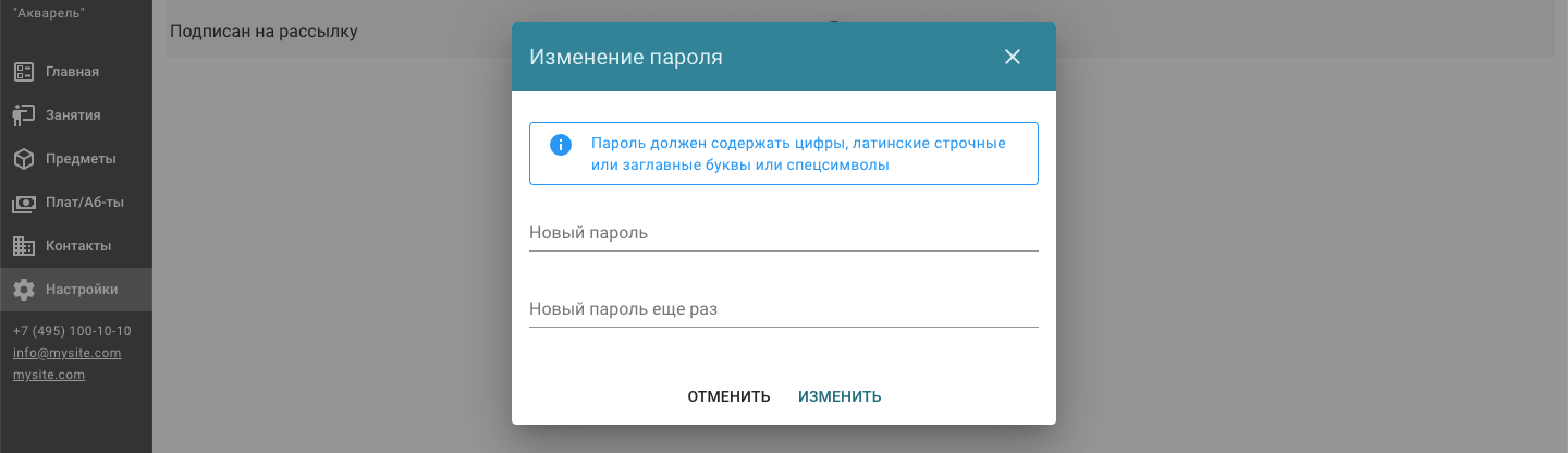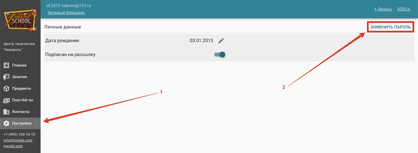 В вашем личном кабинете перейдите во вкладку "Настройки". Нажмите "Изменить пароль". Установите новый пароль.