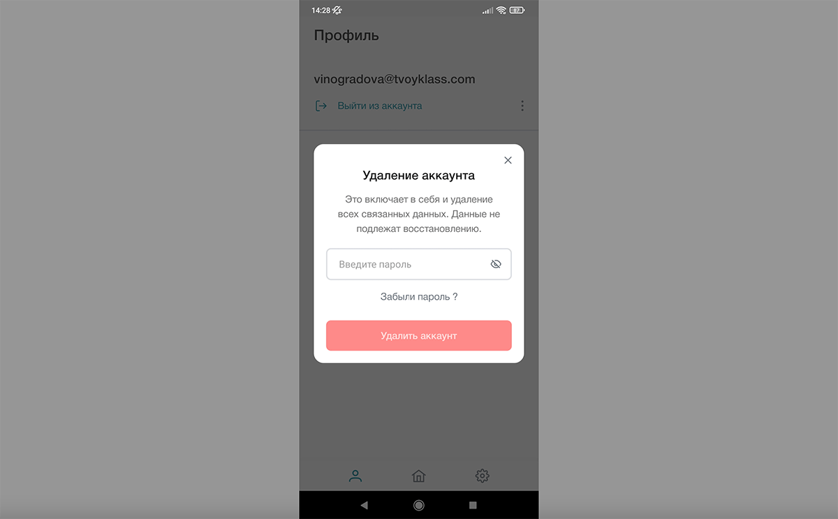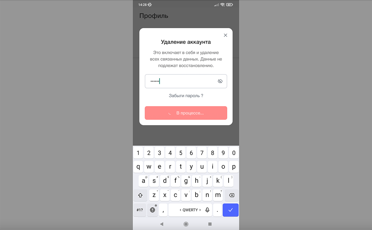 4. В целях безопасности вам необходимо ввести пароль от вашего аккаунта. После чего нажмите на "Удалить аккаунт":