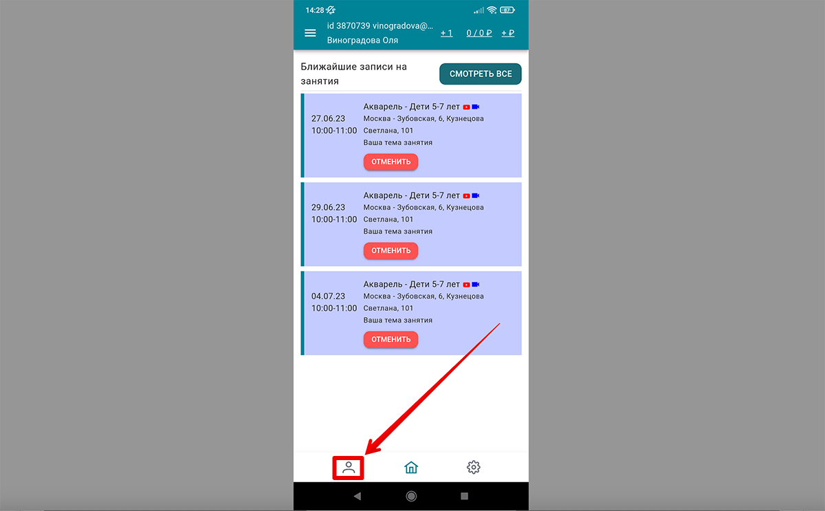 1. Находясь в приложении, нажмите на иконку вашего аккаунта внизу экрана: