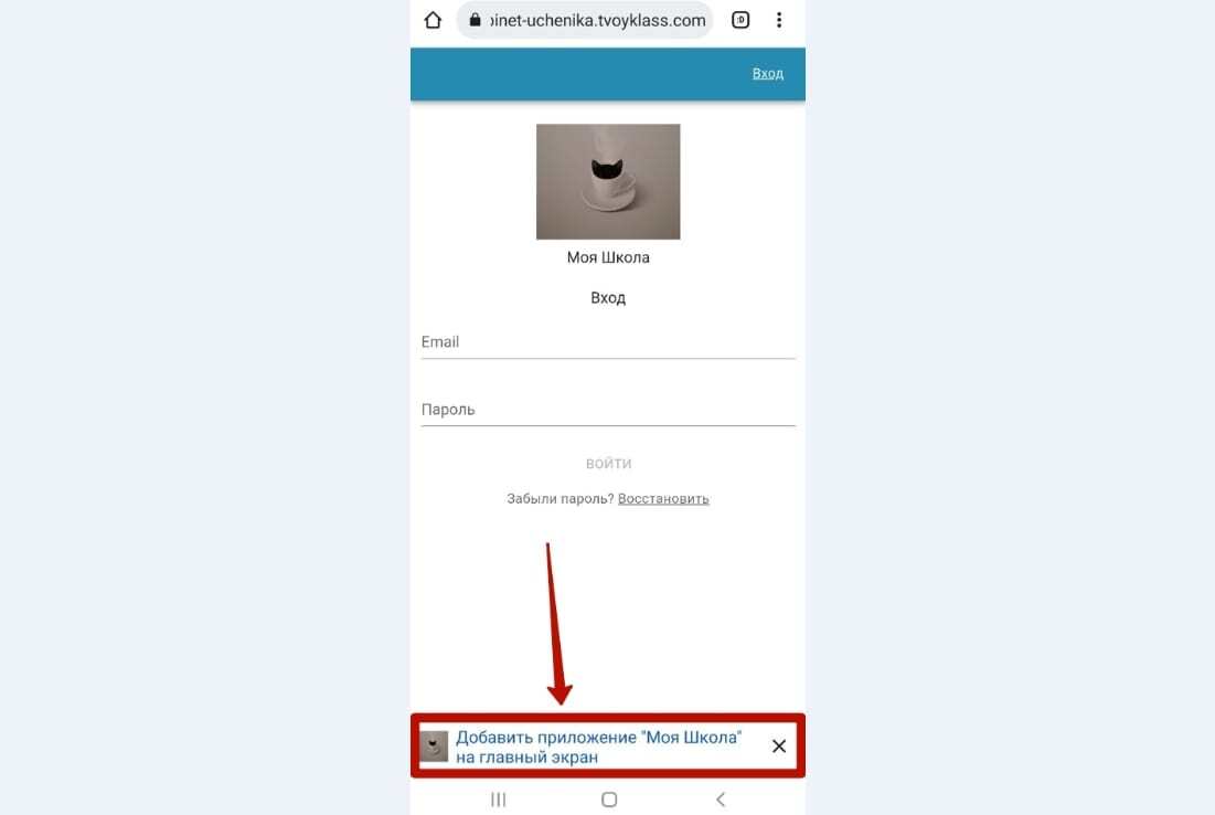 Когда вы перейдете по ссылке личного кабинета, вам будет предложено добавить приложение на главный экран. Нажмите сообщение.