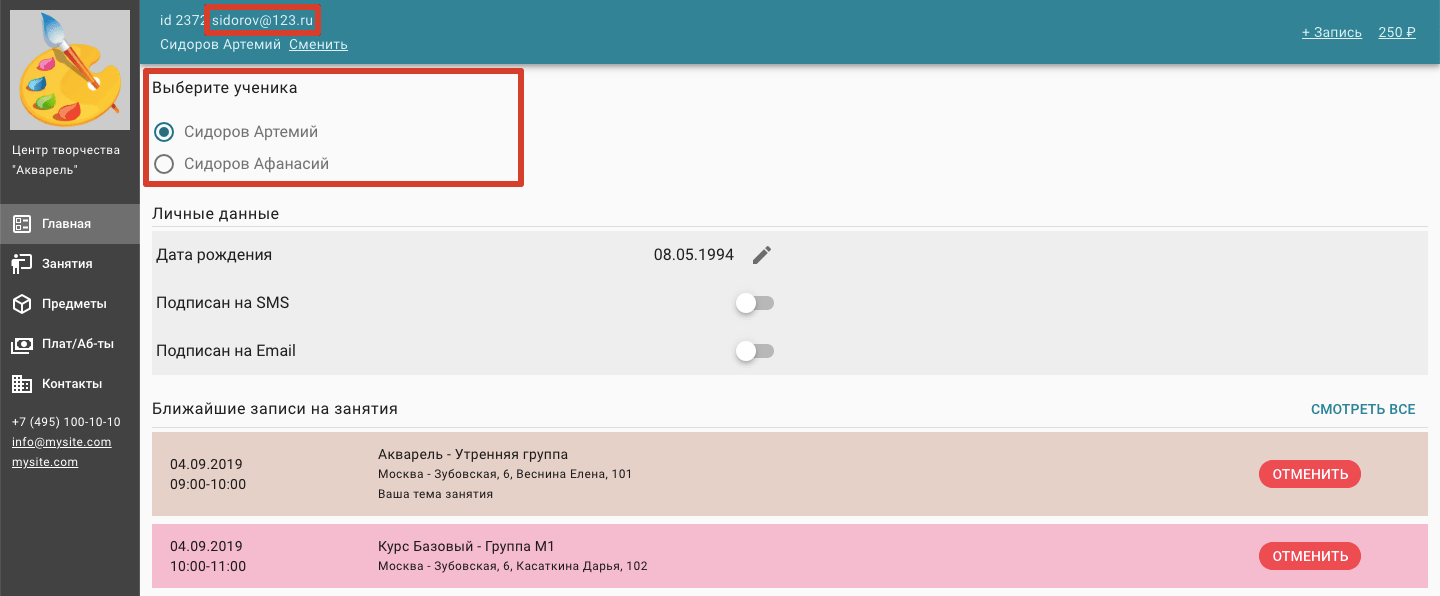 - вы являетесь родителем, и на ваш email оформлено несколько детей.
