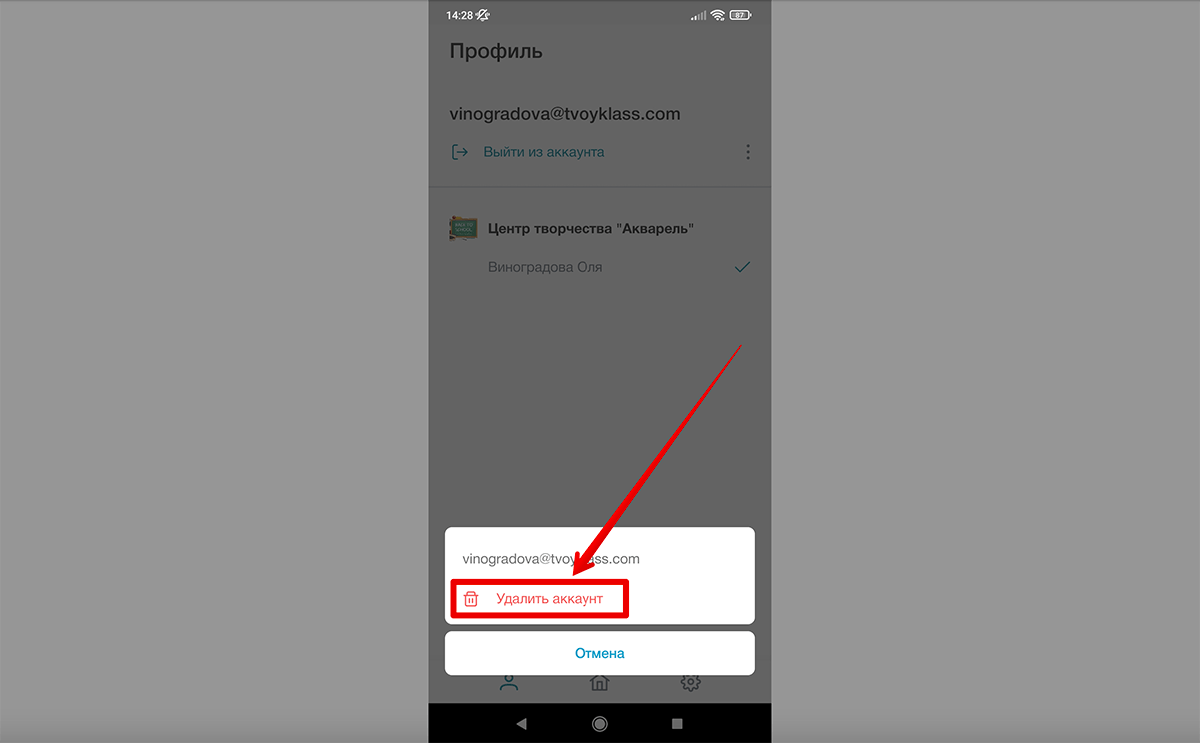 3. В открывшемся окошке внизу экрана выберите "Удалить аккаунт":