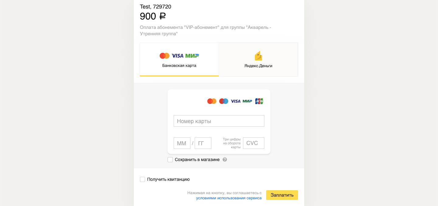 Далее перейдите к оплате, укажите данные вашей карты и нажмите "Оплатить".