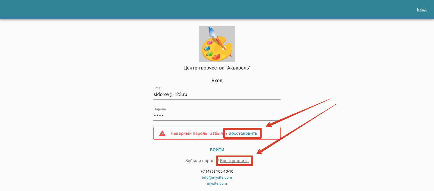 1. Введите свой email и нажмите "Войти" или сразу "Восстановить пароль":